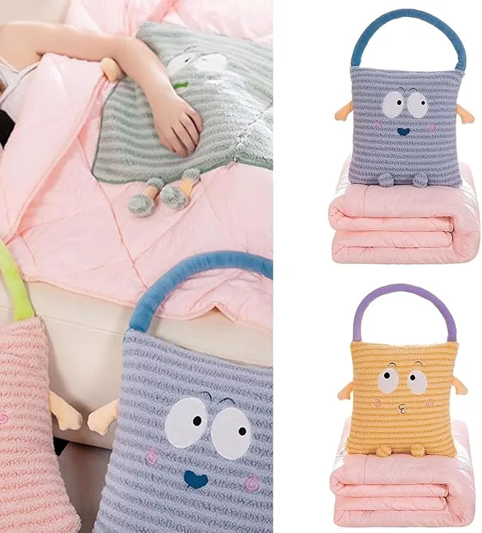 This thoughtfully designed cushion is more than just a cute decorative piece—it’s a clever blend of style, warmth, and functionality. Crafted with a soft, plush outer fabric, it feels gentle and comforting against the skin, making it perfect for daily use. The cheerful cartoon-inspired design adds a playful touch to any space, whether placed on a sofa, bed, or reading chair. With its neatly stitched handle, it is easy to move around the house, allowing you to carry comfort wherever you go without any hassle. When folded, it looks like a charming pillow, keeping your room tidy and visually appealing.