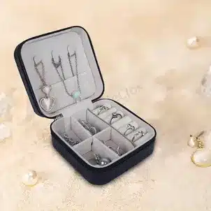 Inside the box, you’ll find dedicated sections for rings, earrings, necklaces, and bracelets, helping you keep everything neatly arranged and easy to find. The zipper closure ensures that your jewelry stays secure while protecting it from dust and accidental spills.