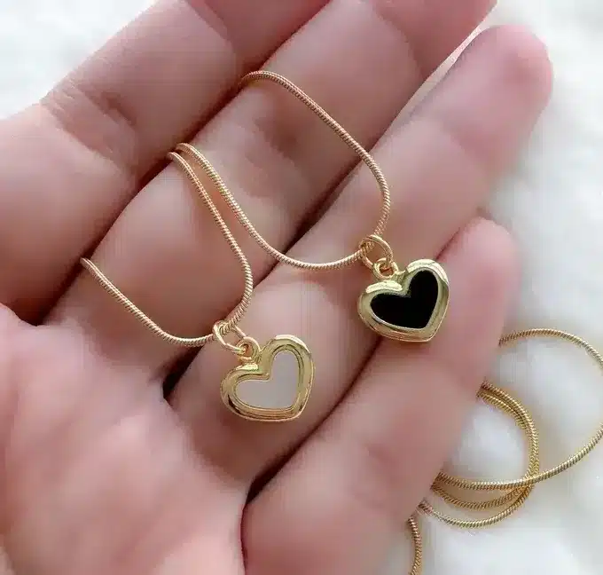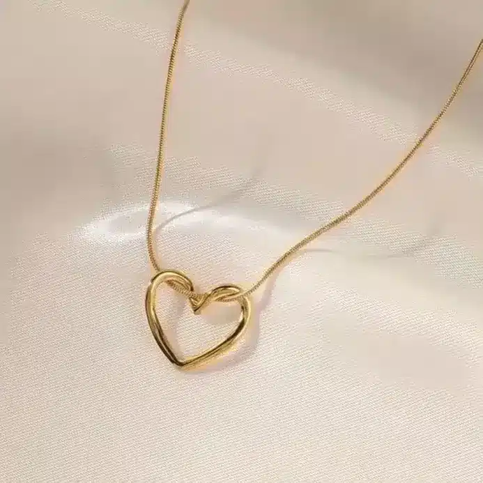 The necklace showcases a delicate heart-shaped pendant that serves as the centerpiece of the design. The heart motif is widely recognized as a symbol of love and emotional connection, making this necklace a meaningful and stylish jewelry choice. The smooth and polished surface of the pendant enhances its shine, allowing it to catch the light beautifully.