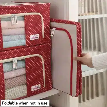 The Foldable Fabric Clothes Storage Organizer Bags (Multi-Size) are a smart and space-saving solution for keeping your wardrobe neat and organized. Designed with a stylish polka-dot pattern and practical features, these storage bags are perfect for storing clothes, blankets, quilts, and more.