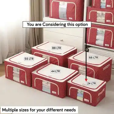 These organizers come in multiple size options (24L, 44L, 55L, 66L, 88L), allowing you to choose the perfect size based on your storage needs. Whether you want to store seasonal clothes, bedsheets, or kids’ garments, these bags make organization simple and efficient.