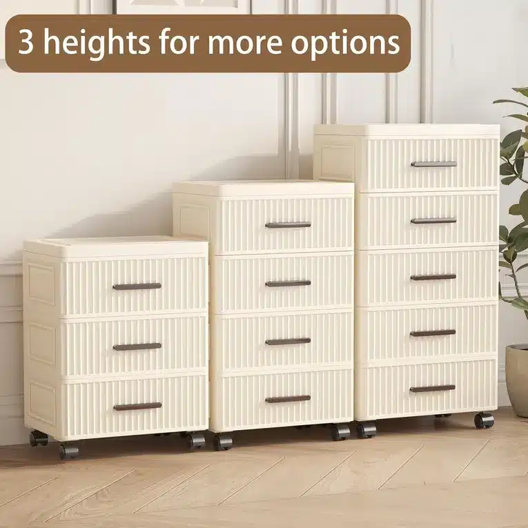 The cabinet is equipped with smooth-rolling wheels, allowing you to move it effortlessly from one place to another. This makes it ideal for dynamic spaces where flexibility and mobility are important, such as bedrooms, living rooms, or work areas.